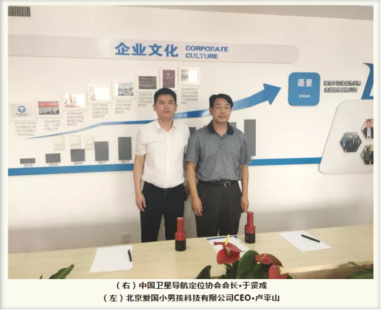 (右)中國(guó)衛(wèi)星導(dǎo)航定位協(xié)會(huì)會(huì)長(zhǎng)·于賢成(左)北京愛(ài)國(guó)小男孩科技有限公司CEO·盧平山