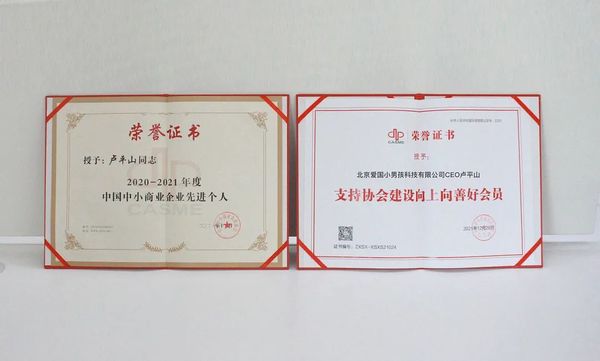 2021年12月26日,愛國小男孩CEO盧平山榮獲“2020-2021年度中國中小商業企業先進個人”稱號及“支持協會建設向上向善號會員”稱號。