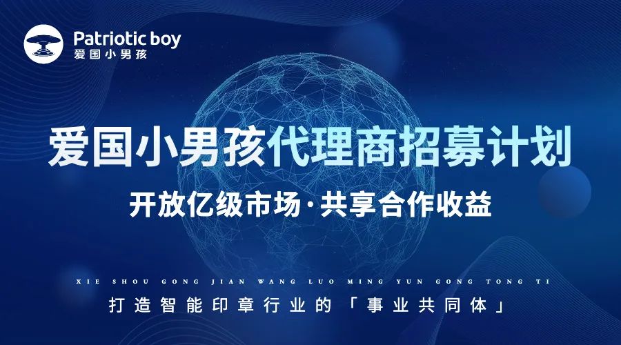 作為數字化智能印章行業的先行者,為幫助廣大企業,特別是中小微企業解決疫情下創收增長難題,愛國小男孩特別啟動2022全國代理商招募計劃,攜手伙伴一起打造智能印章行業的「事業共同體」!