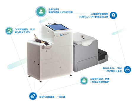 智能印控機集掃描、打印、審批、蓋章、鑒偽多功能于一體,立足于安全管控、操作便攜,快速響應(yīng)等基本要求,通過線上審批的方式,解放人力,快速、高效的完成自助、自動用印。