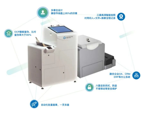 企業公章被偽造不僅會讓犯罪分子有機可乘,對企業運營和發展帶來極大風險,偽造實習證明也會讓企業信譽受損。企業印章安全決定了企業資金的安全。企業印章安全管理,對保護市場主體合法權益、穩定投資預期至關重要。如今許多有大批量蓋章需求的企業都引用了集掃描、打印、審批、蓋章、鑒偽多功能于一體的智能印控機。